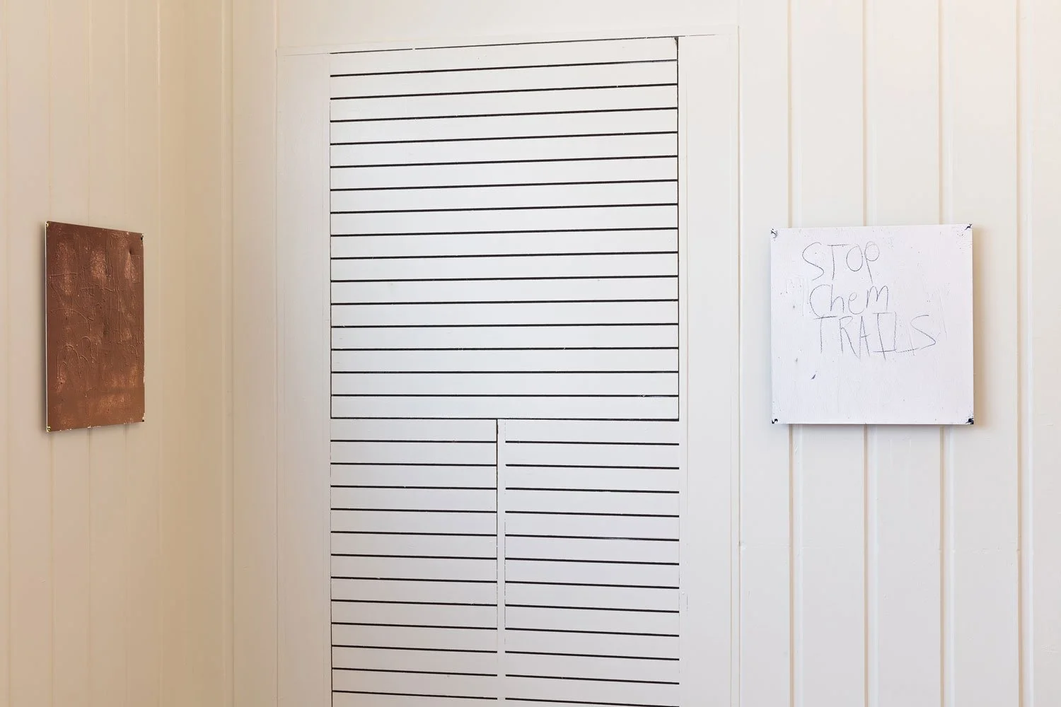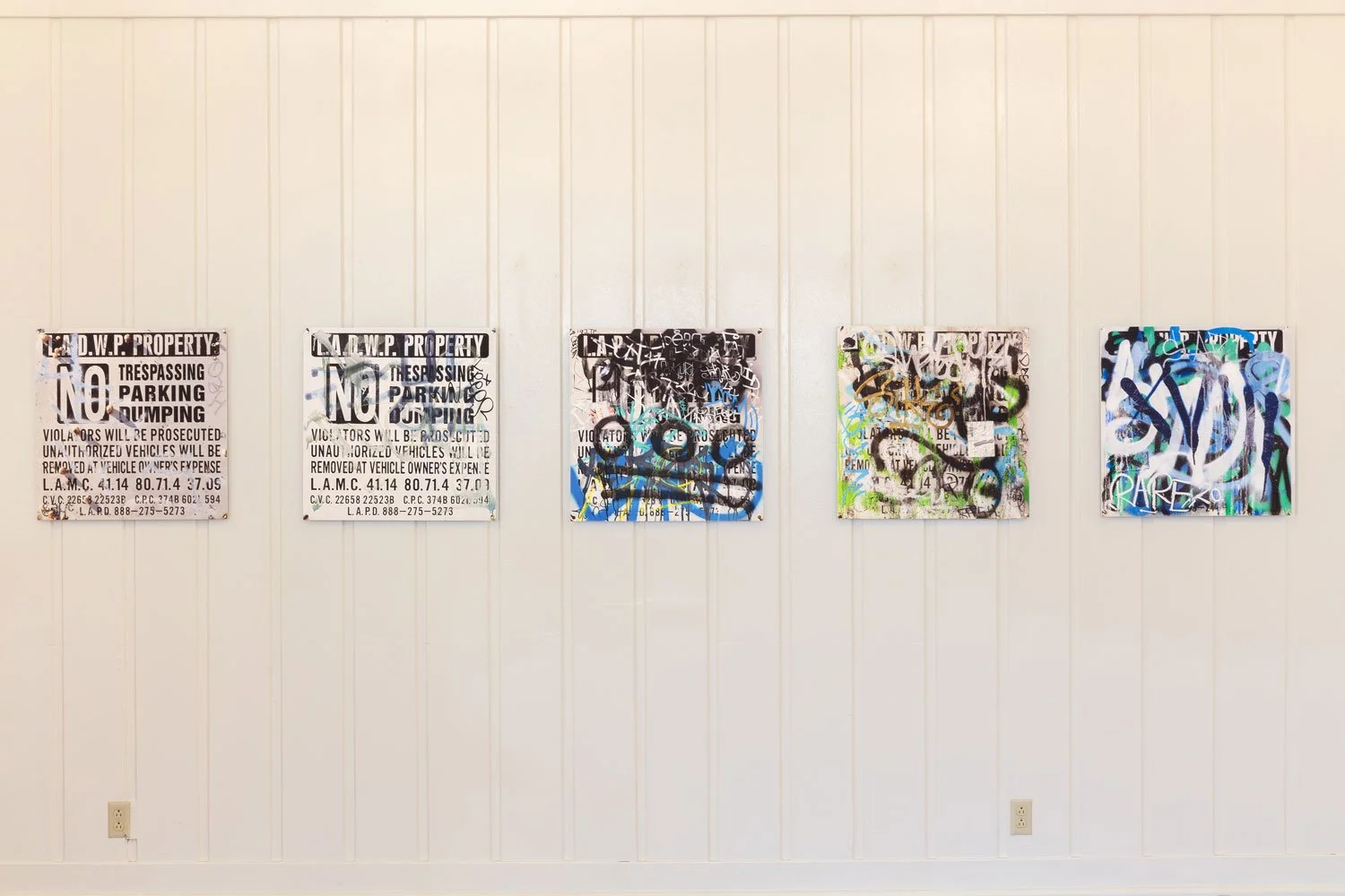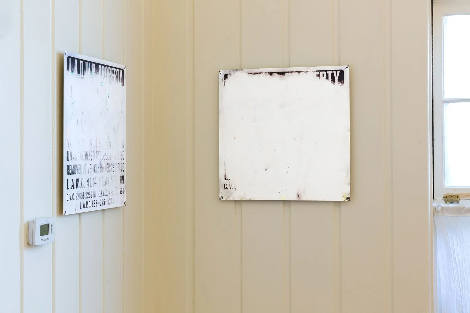 I became interested in the Department of Water and Power signs when I noticed that they had been tagged recurrently with sharpies, crayons, stickers, and spray paint. Equipped with a paint roller, a vigilante graffiti-buster periodically redacted these markings. Covering the surface in opaque layers of white, grey, black, and brown housepaint rendered the message illegible, stripping each sign of its intended function--to deter the public from trespassing--while providing a tabula rasa for fresh markings. The cat-and-mouse game between taggers and graffiti busters dwindled in the fall of 2021, soon after local schools reopened their doors.